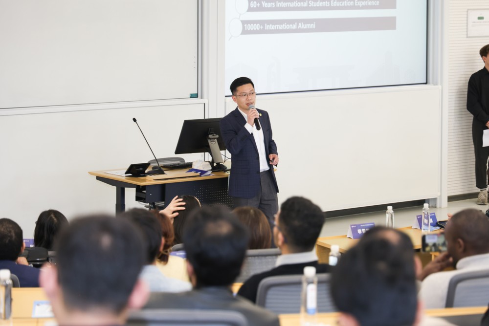 Mr. Li Xiaopeng, Dean of the College of International Education of ECUST, delivered a speech, extending a warm welcome to the attendees and sharing the history、future plans in international students’ education and stories of outstanding international alumni representatives.