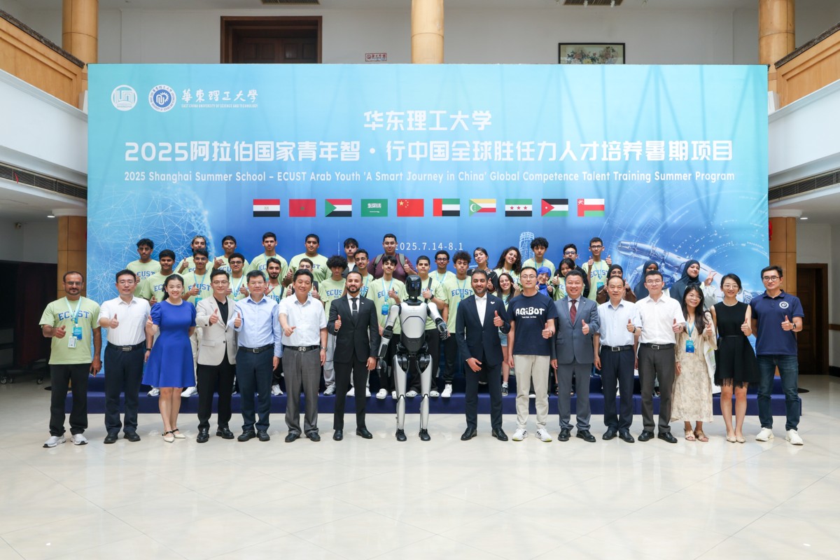 July 14, 2025 - The opening ceremony of the 2025 Shanghai Summer School - ECUST Arab Youth “A Smart Journey in China” Global Competence Talent Training Summer Program was held at the Yifu Auditorium. This marks the university’s first technology-focused summer program dedicated to young talents from Arab nations, attracting 33 outstanding participants from nine countries, including the UAE, Saudi Arabia, and Morocco.